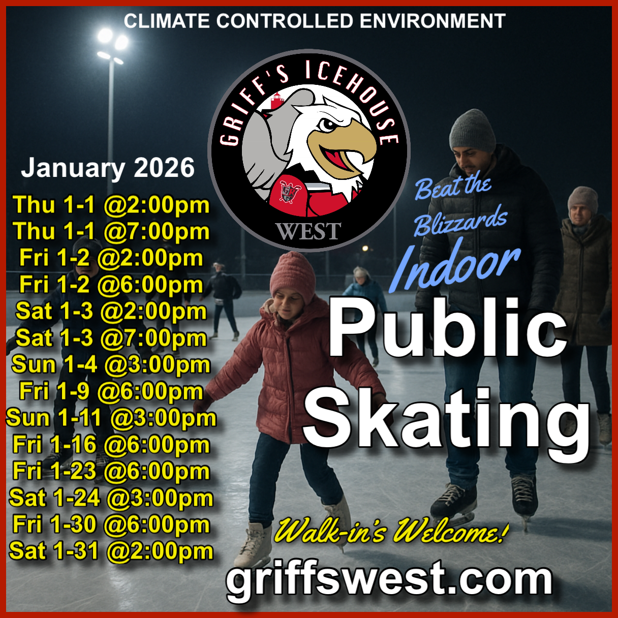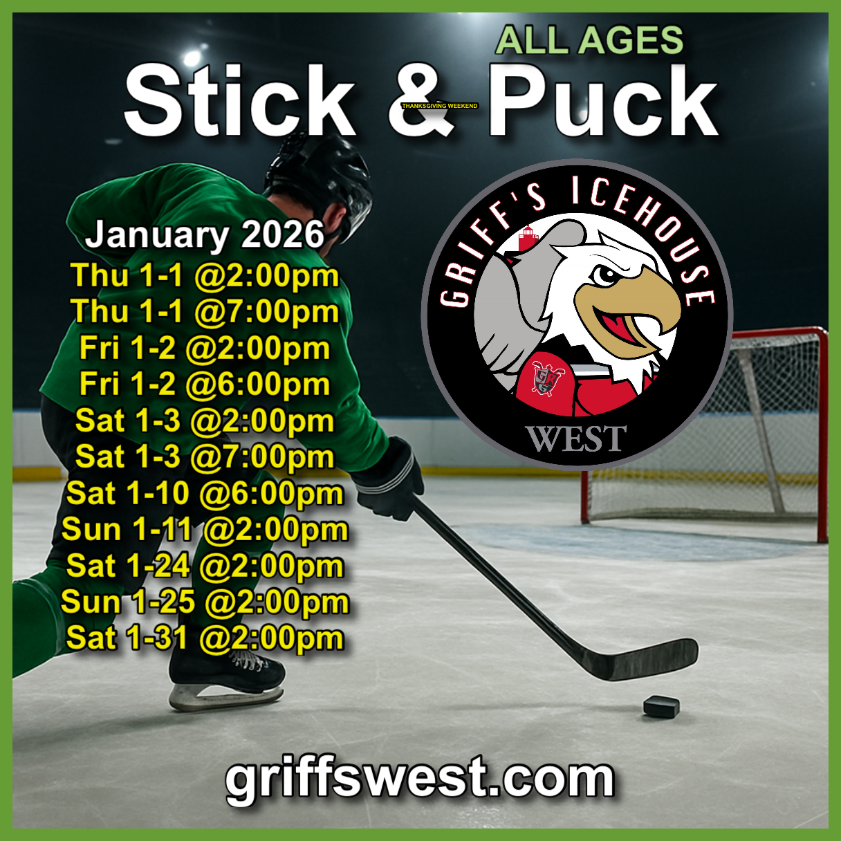 Griff’s West is from the owners of the Grand Rapids Griffins (Detroit Red Wings AHL affiliate). We offer two ice rinks for public and private use, as well as Learn to Skate and Learn to Play classes, drop-in hockey and much more. Griff’s West is also home to Hope College hockey. Check out today’s ice schedule or the schedule board, updated daily, to see when the ice rinks are available for public skating. We also have a pro shop, SK8’s Pro Shop, located right inside Griff’s IceHouse West for all your equipment needs.